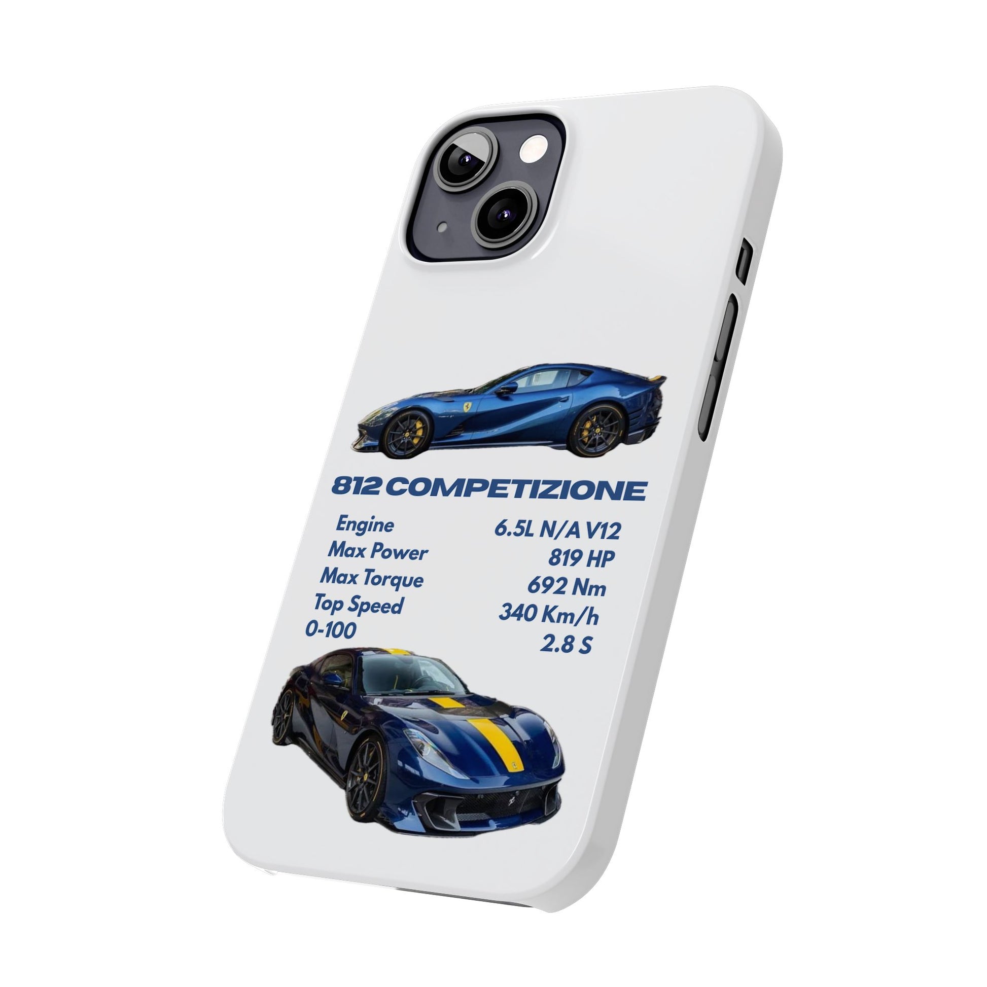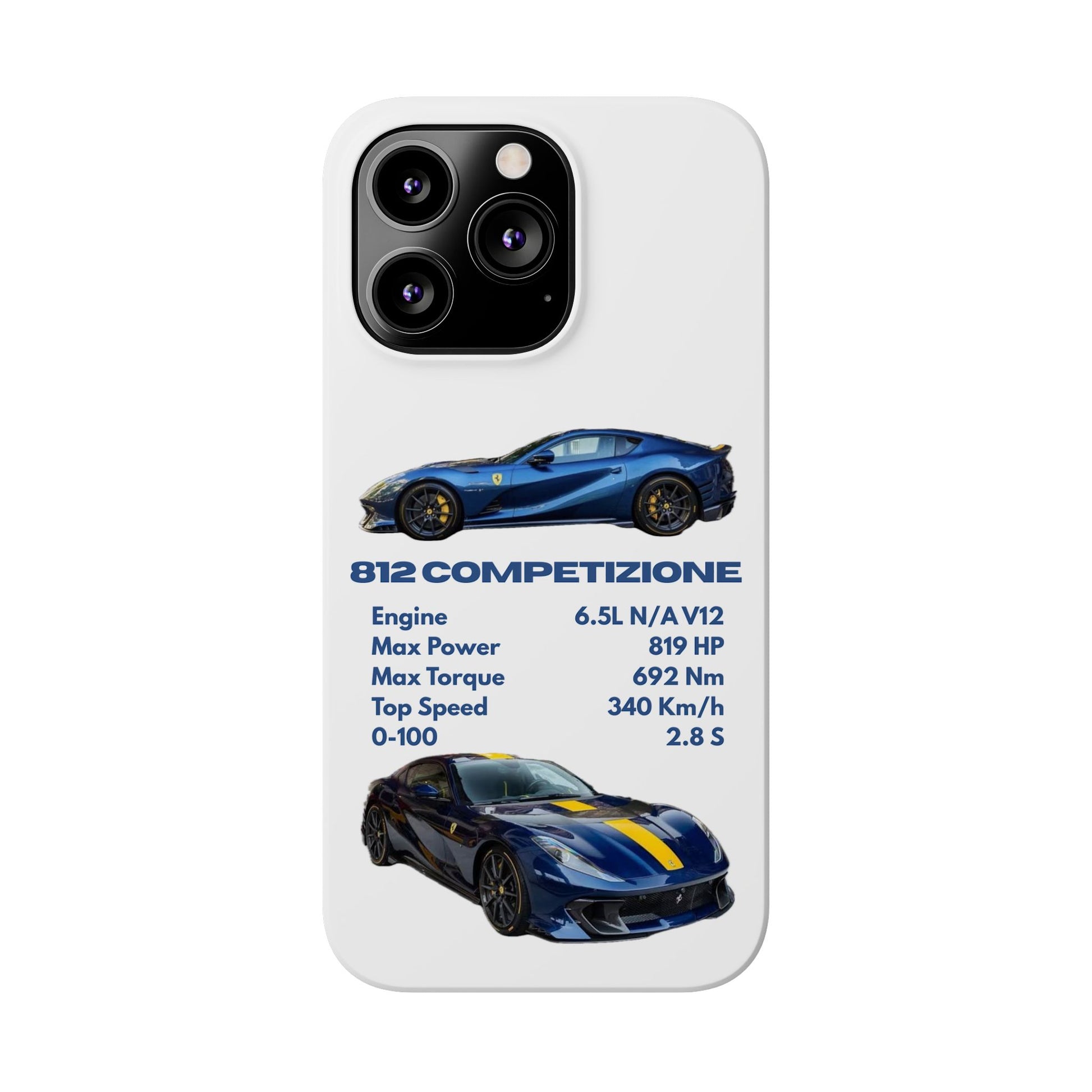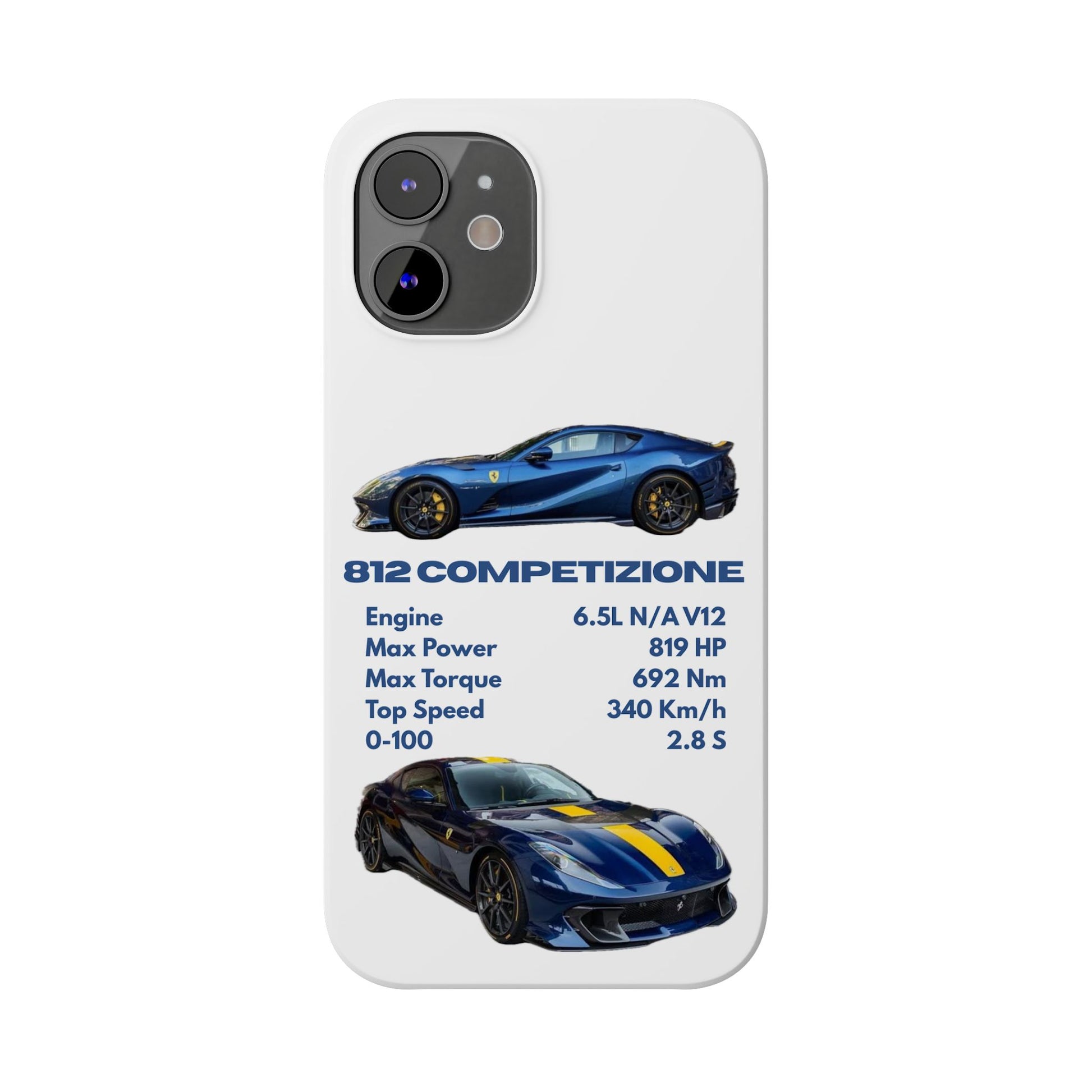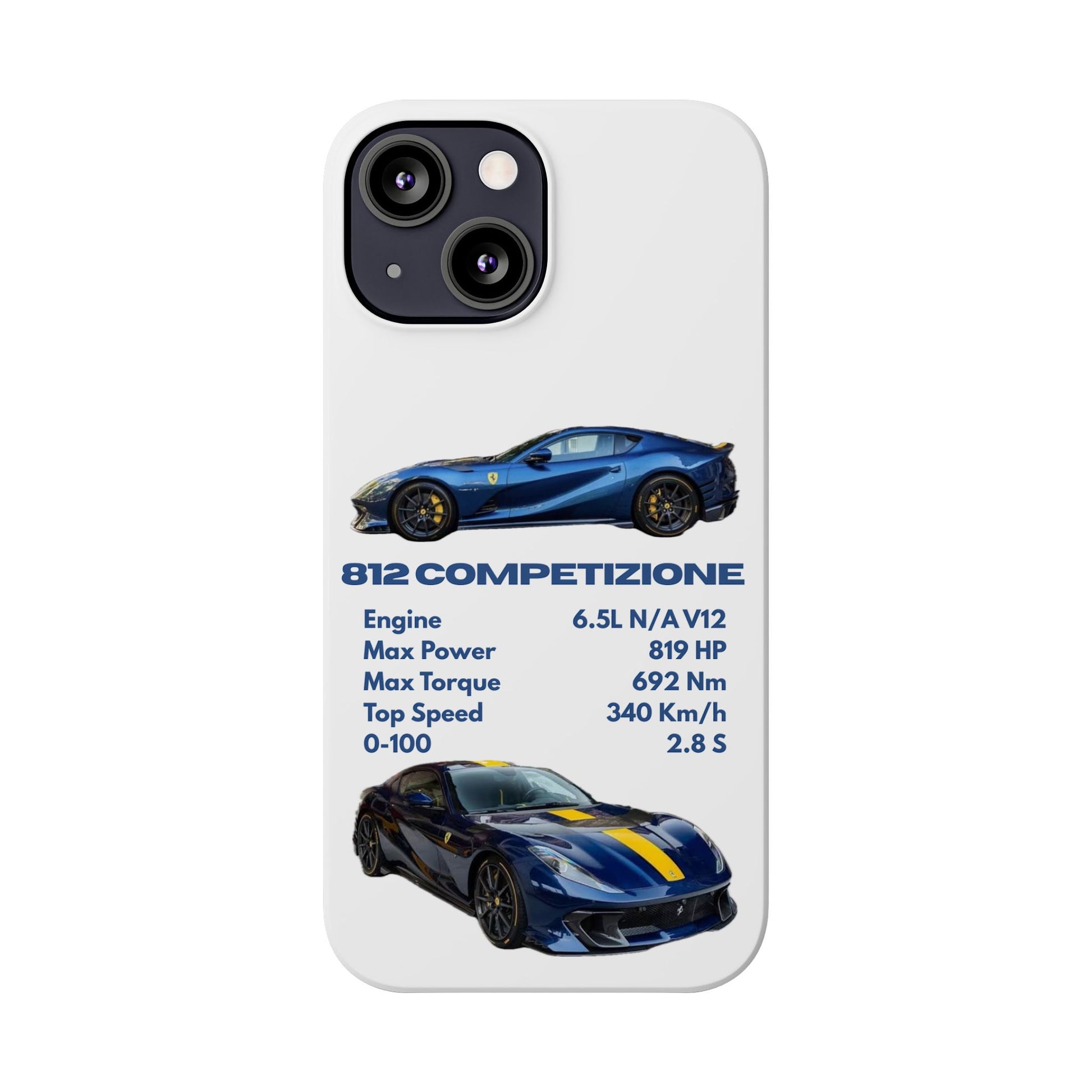 Show off your passion for speed with this Ferrari 812 Competizione phone case. Featuring a sleek design with high-quality images of the 812 Competizione and its impressive specs, this case is perfect for car enthusiasts. Made from durable materials, it offers reliable protection against scratches, bumps, and everyday wear—while keeping your phone looking stylish and unique.