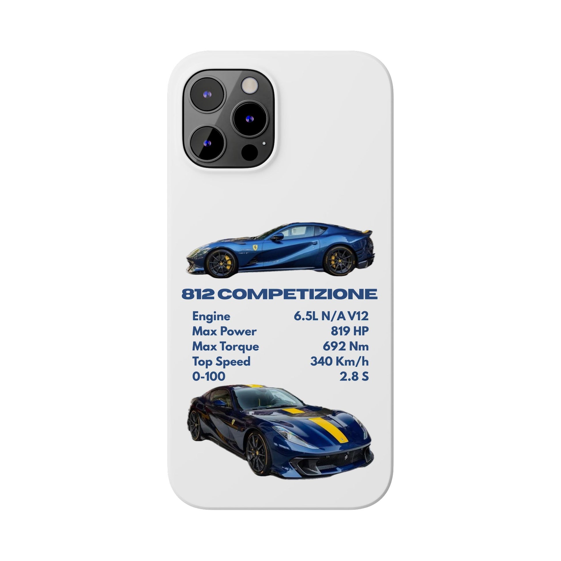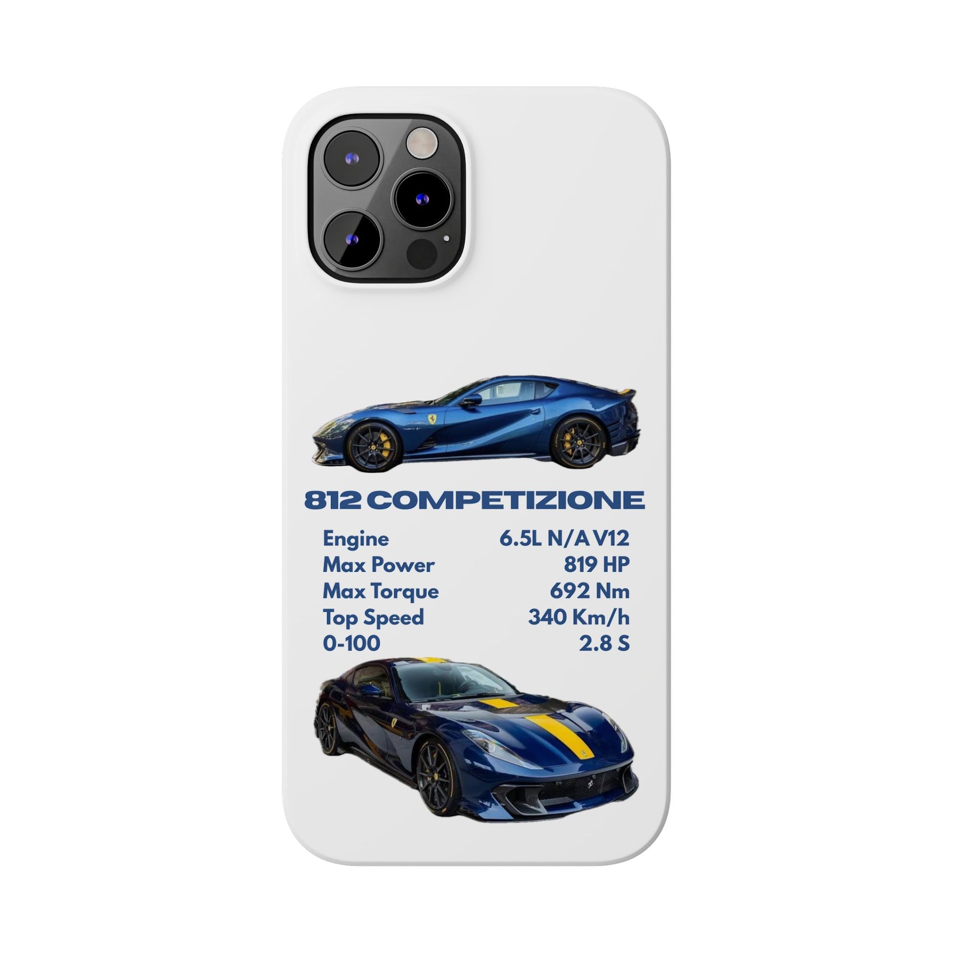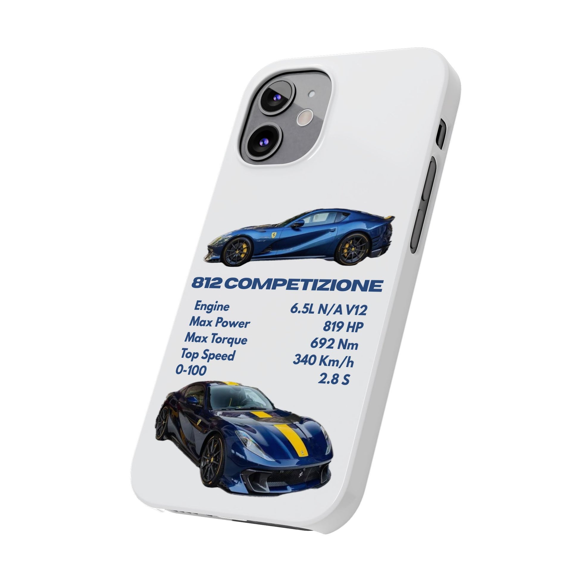Show off your passion for speed with this Ferrari 812 Competizione phone case. Featuring a sleek design with high-quality images of the 812 Competizione and its impressive specs, this case is perfect for car enthusiasts. Made from durable materials, it offers reliable protection against scratches, bumps, and everyday wear—while keeping your phone looking stylish and unique.