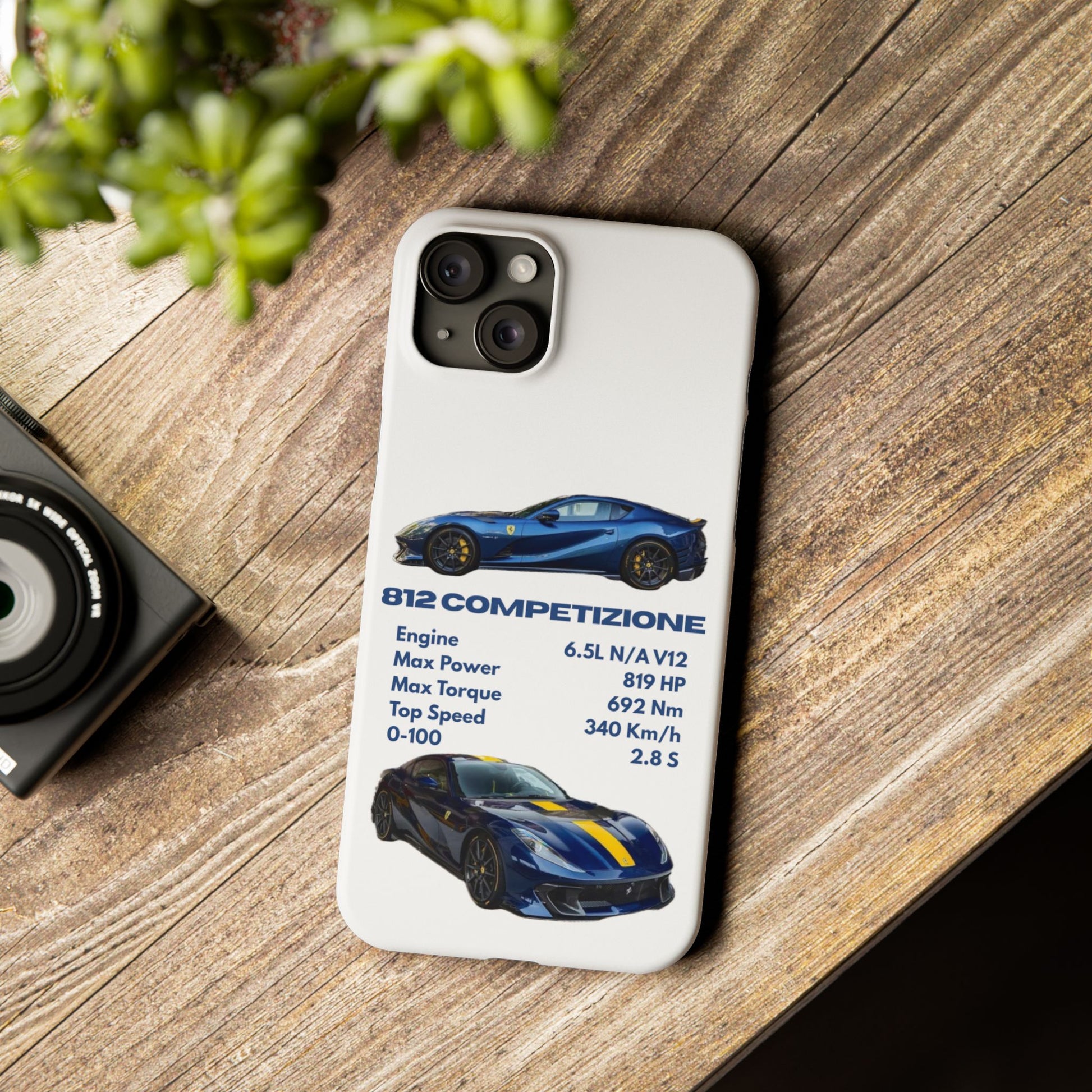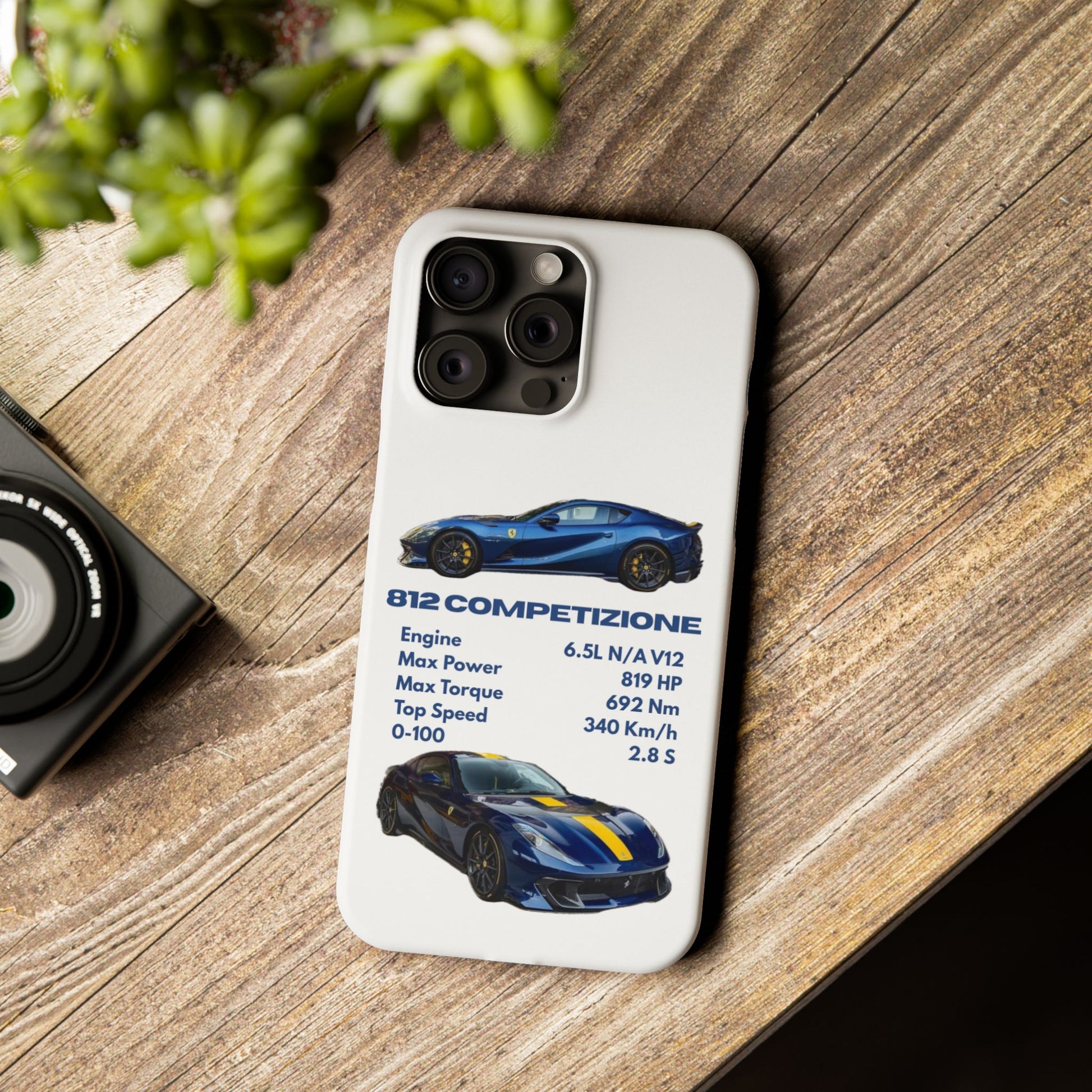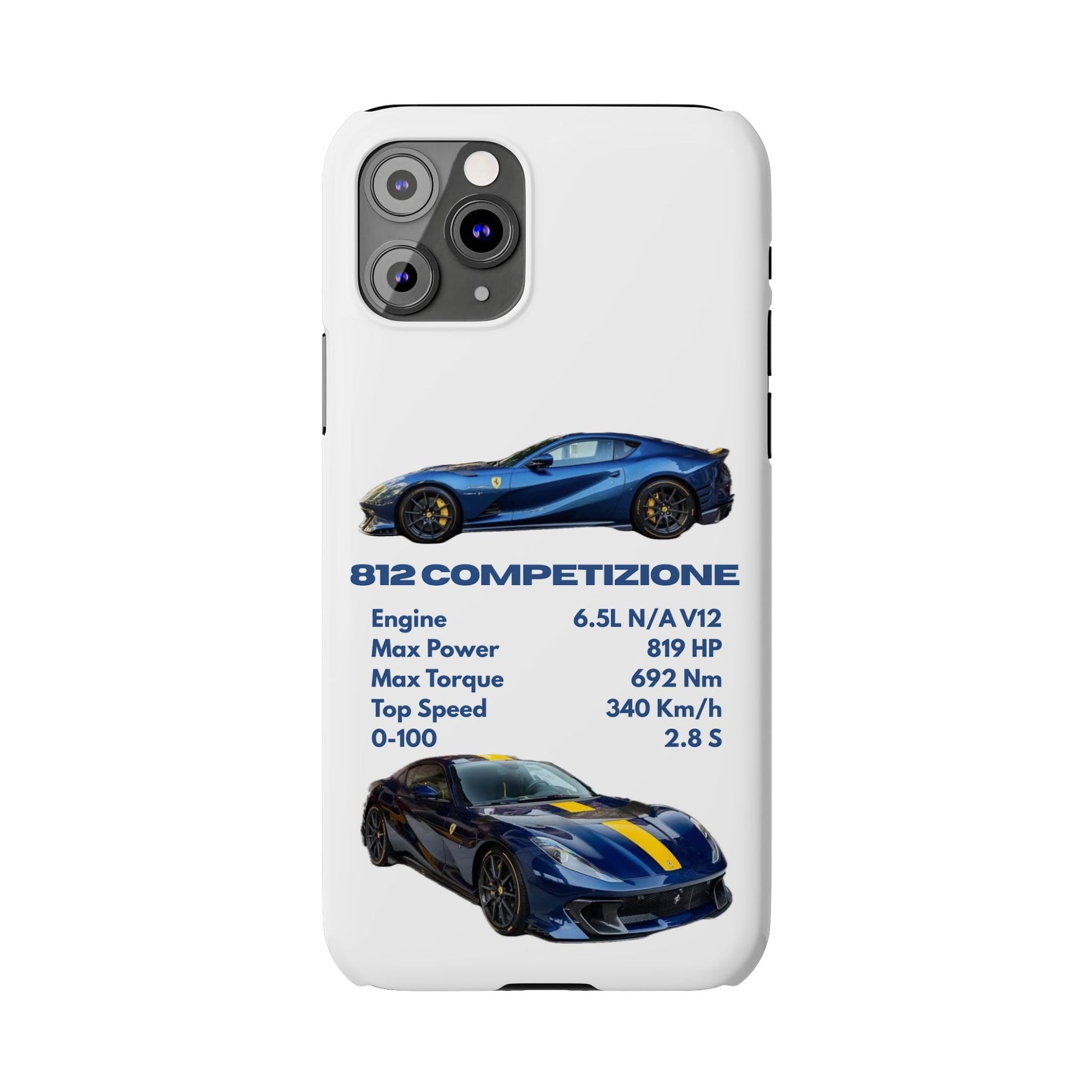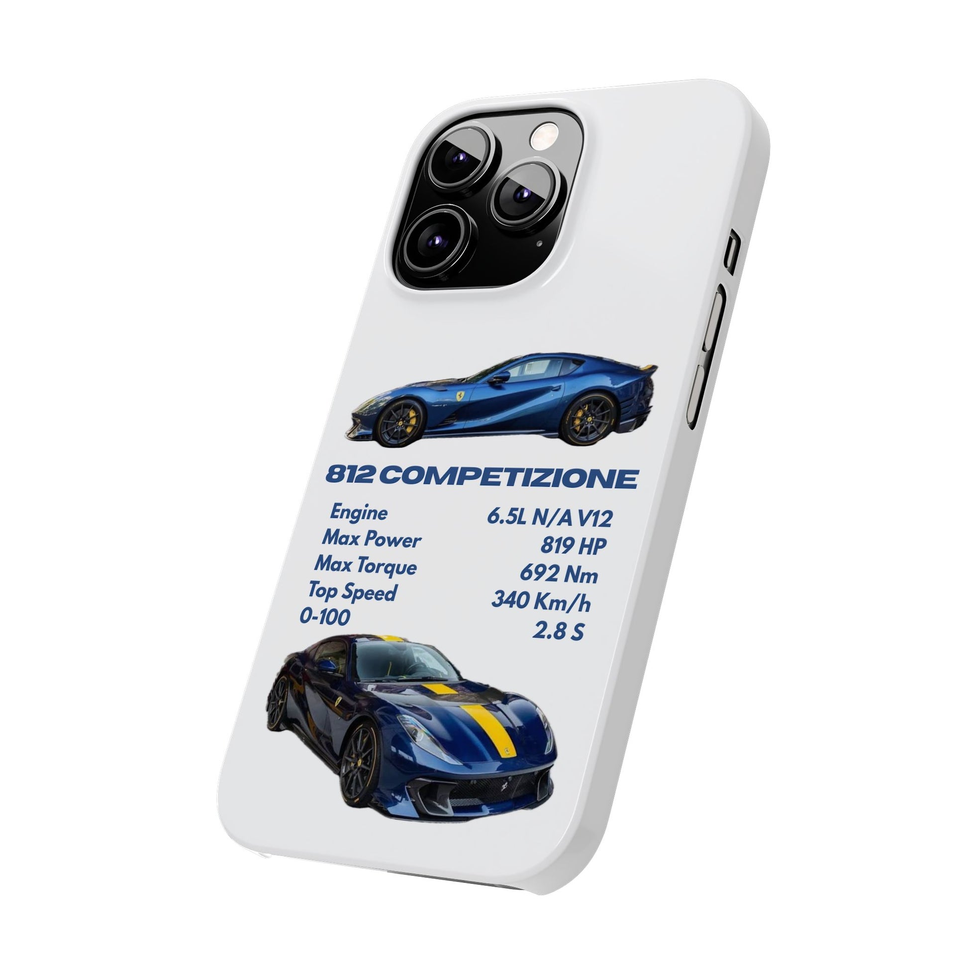 Show off your passion for speed with this Ferrari 812 Competizione phone case. Featuring a sleek design with high-quality images of the 812 Competizione and its impressive specs, this case is perfect for car enthusiasts. Made from durable materials, it offers reliable protection against scratches, bumps, and everyday wear—while keeping your phone looking stylish and unique.