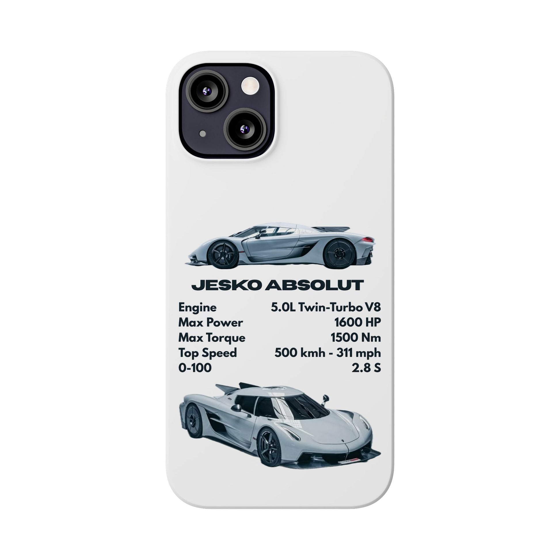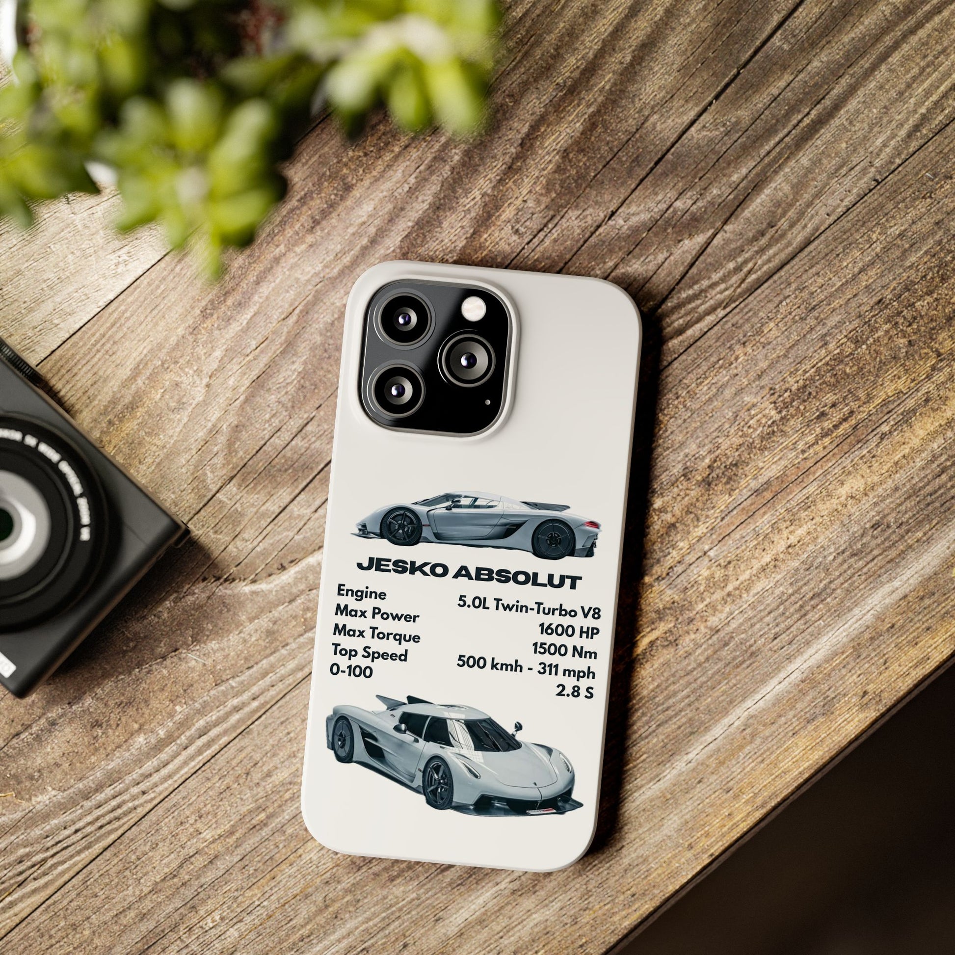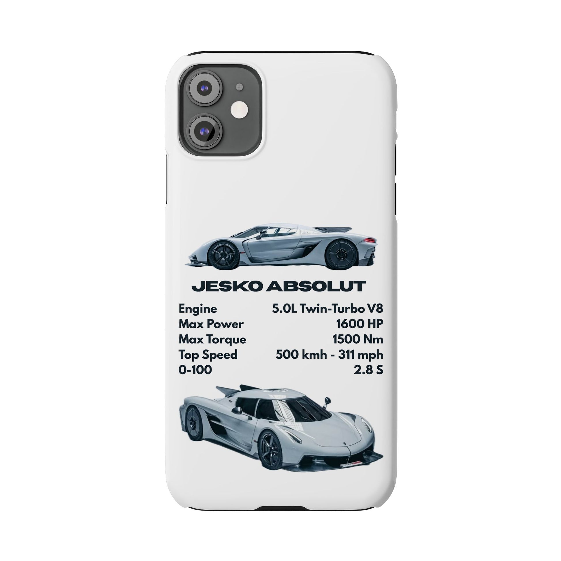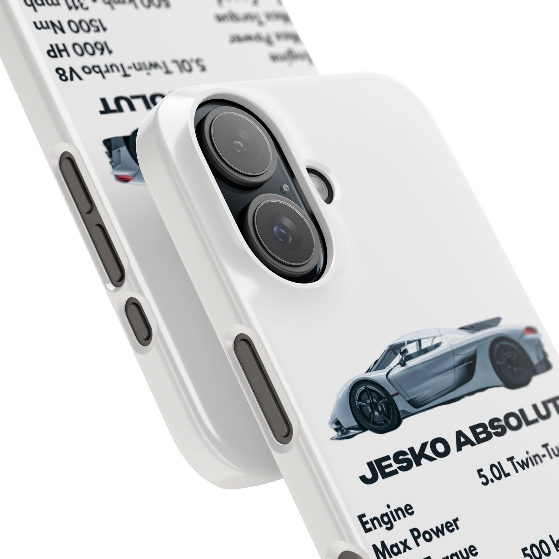 Unleash pure top-speed performance with this Koenigsegg Jesko Absolut phone case. Featuring detailed imagery and key specs of the world’s fastest hypercar, this case combines jaw-dropping style with everyday protection. The lightweight, shock-resistant design keeps your phone safe from scratches and drops while showcasing your love for cutting-edge Swedish engineering and record-breaking speed.