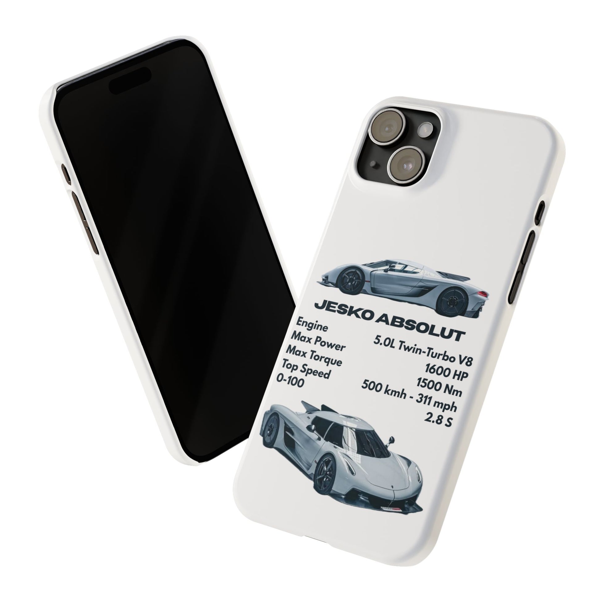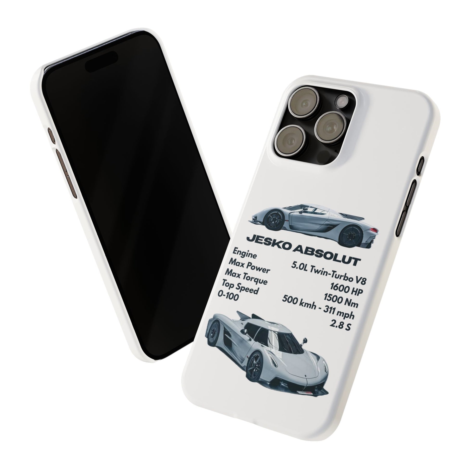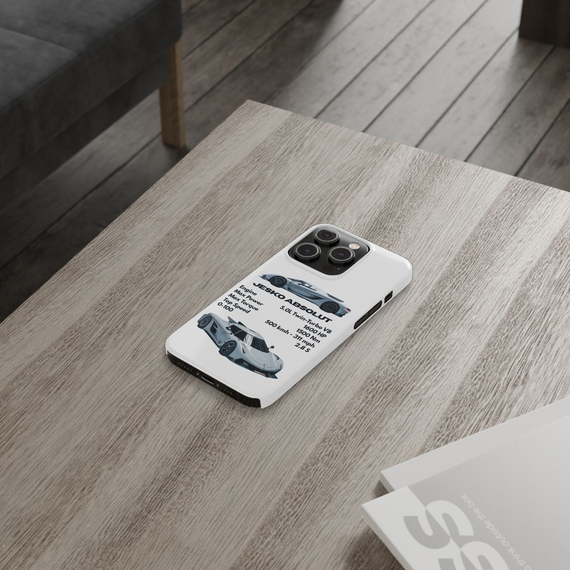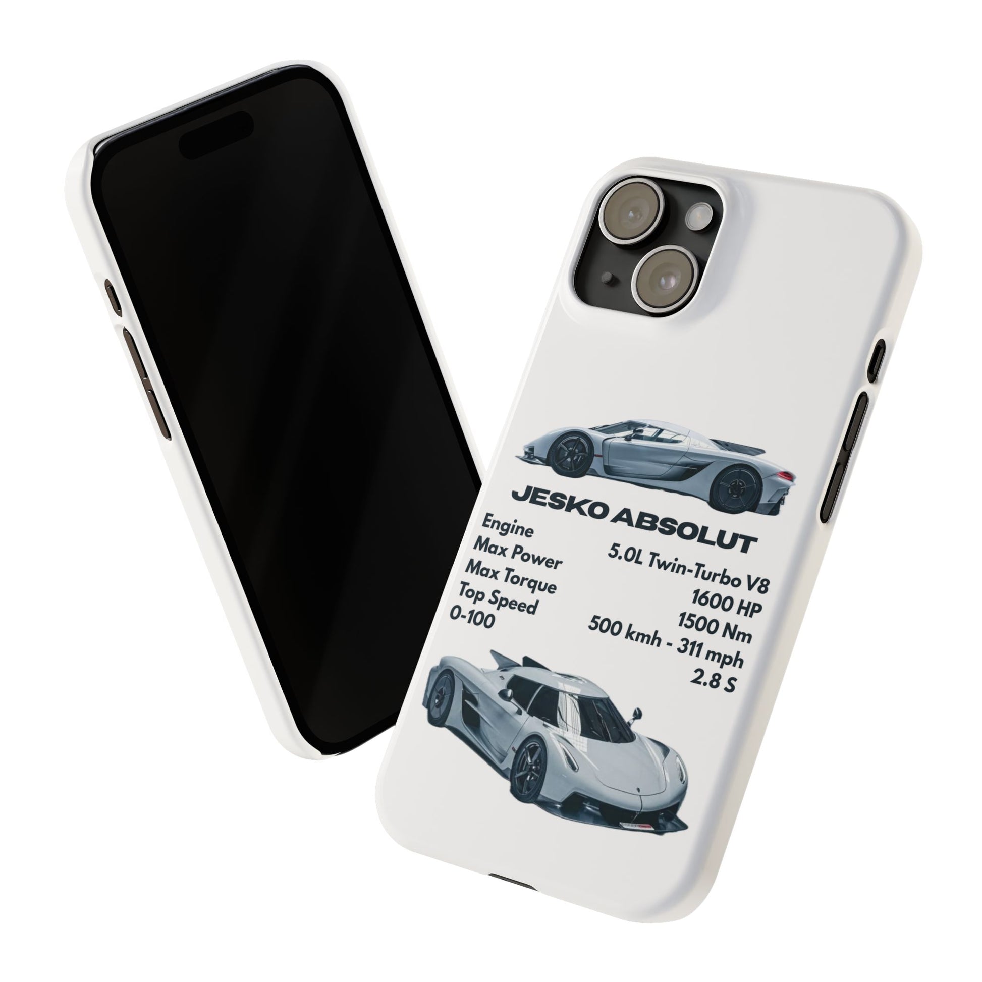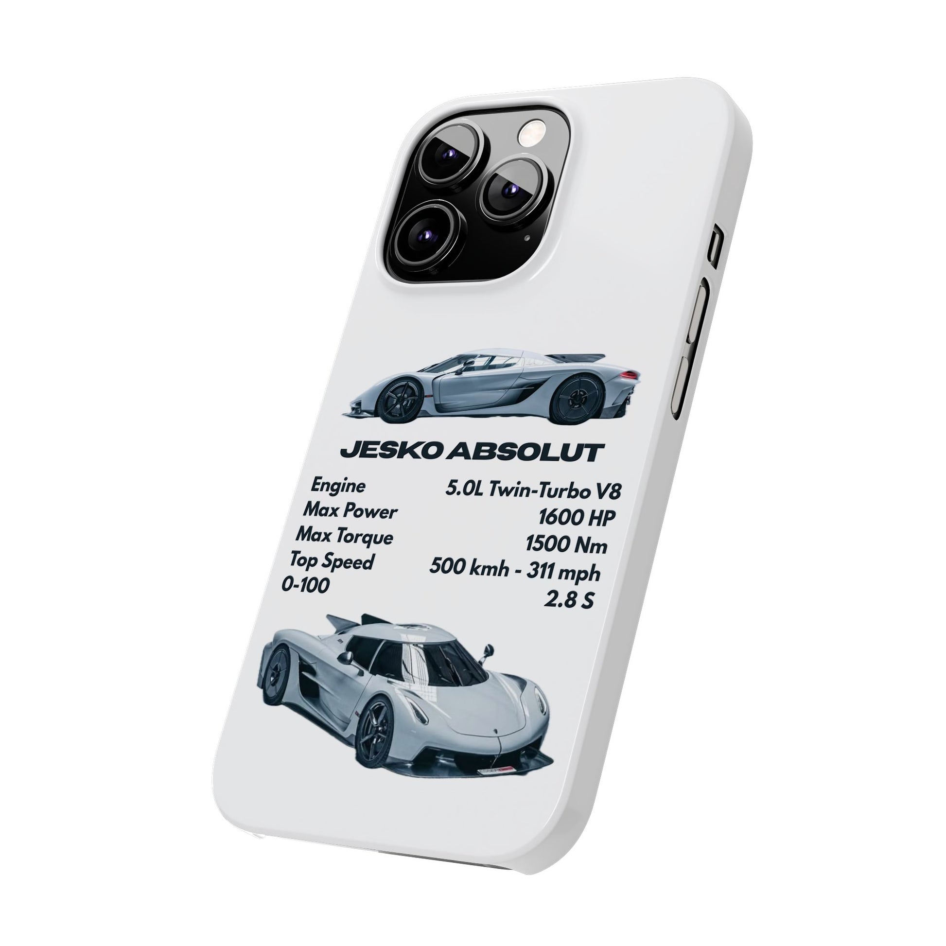 Unleash pure top-speed performance with this Koenigsegg Jesko Absolut phone case. Featuring detailed imagery and key specs of the world’s fastest hypercar, this case combines jaw-dropping style with everyday protection. The lightweight, shock-resistant design keeps your phone safe from scratches and drops while showcasing your love for cutting-edge Swedish engineering and record-breaking speed.